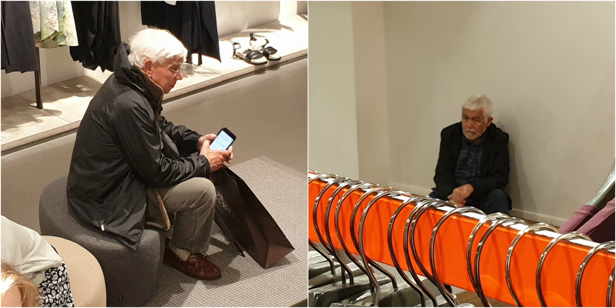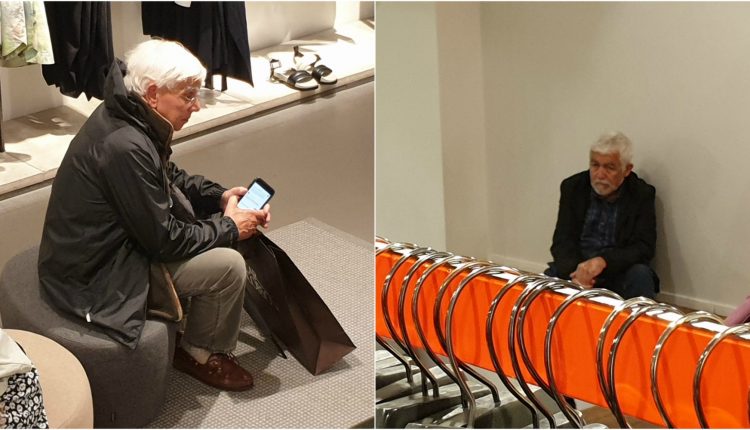 Þeir eru margir karlarnir sem eiga erfitt þegar farið er úr búð í búð. Áhuginn varir kannski í eina til tvær verslanir. Þar eftir tekur rápið oft á. Myndirnar tala sínu máli, en þær voru teknar í verslun í Stokkhólmi í síðustu viku.