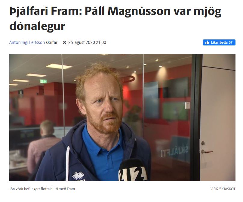 Jón Þórir Sveinsson, þjálfari Fram, er ósáttur með hvernig Páll lét í stúkunni: „Páll Magnússon var mjög dónalegur. Auðvitað geta menn sagt það sem þeir vilja fyrir utan völlinn en menn þurfa að passa orðbragðið og sýna smá kurteisi.“ Vestmanneyingar unnu leikinn tvö eitt.