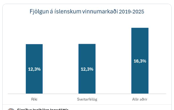Opinberu starfsfólki hefur fjölgað mun minna en öðrum á vinnumarkaði og eru því hlutfallslega færri núna en þau voru árið 2019. Íbúum landsins hefur samt fjölgað mjög mikið og þjóðin er að eldast sem þýðir að fleiri þurfa þjónustu. Þess vegna er álagið á opinbert starfsfólk alltaf að aukast. Strákarnir eru reyndar ekkert að mæla það en afleiðingarnar eru mannekla, aukin starfsmannavelta og veikindi