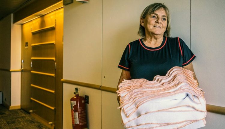 Texti og mynd: Alda Lóa: „Þetta er æðislegt, hérna hefur alltaf verið gott að vinna, ég var herbergisþerna á hótelinu í 25 ár og hef verið í saumaskpanum í þrjú ár. Félagsskapurinn er alveg rosalega góður. Það var gaman á herbergjunum og herbergisþernustarfið var eftirsótt og færri komust að en vildu. Í þá daga voru þetta oftast fullorðnar íslenskar konur sem voru í þrifum, konur sem voru laustengdar vinnumarkaðnum og komu í afleysingar einn til tvo daga í senn. Það var ekki svona mikið að gera eins og núna, það er ekki hægt að líkja því saman.