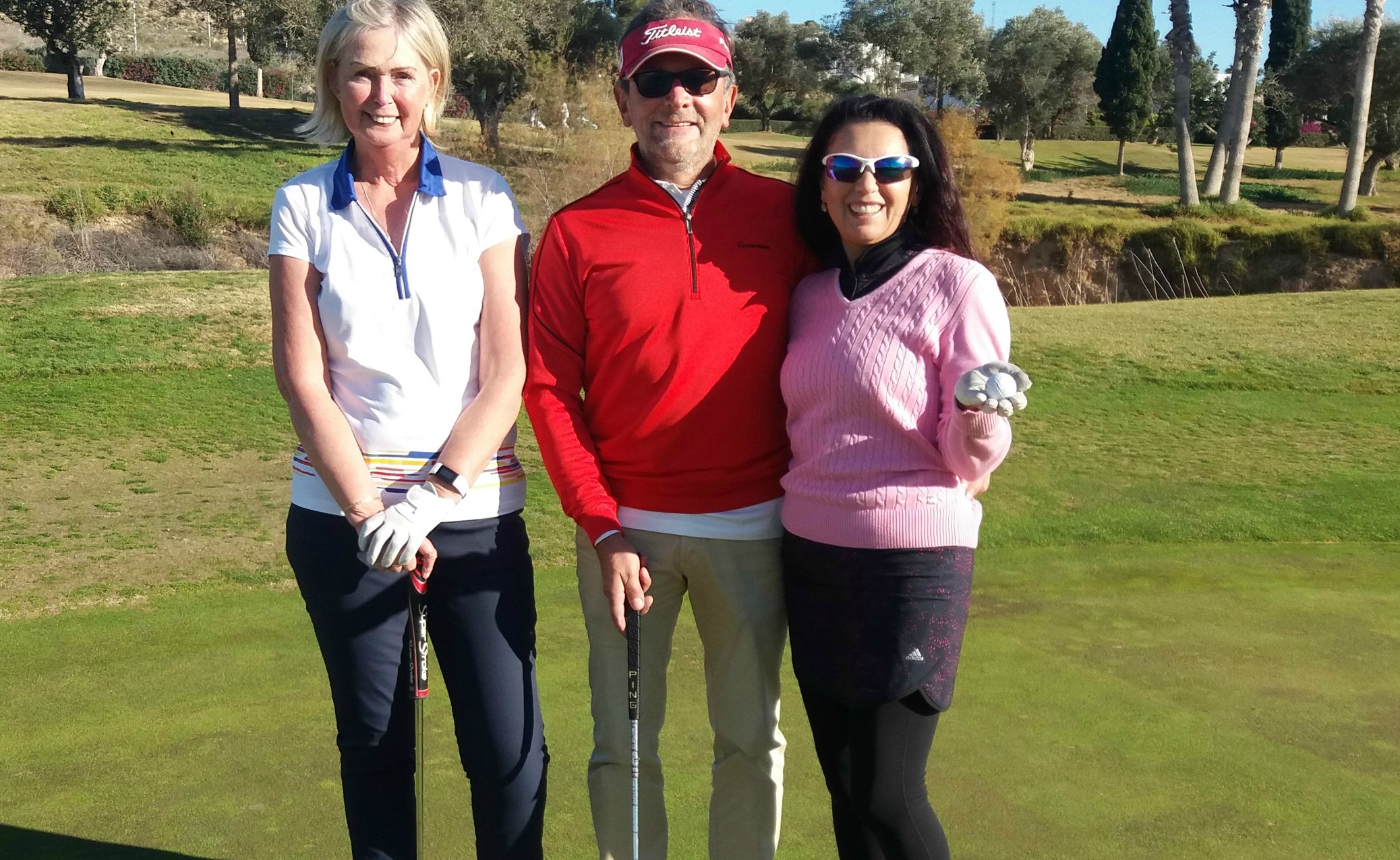 Tvo síðustu hringina á La Finca, í dag og í fyrradag, spiluðum við annars vegar við sérlega sérvitran Finna og hins vegar við fínustu hjón frá Póllandi. Í dag var veðrið frábært, sem og aðra daga. Hitinn fast að tuttugu gráðum og glaðasólskin.
