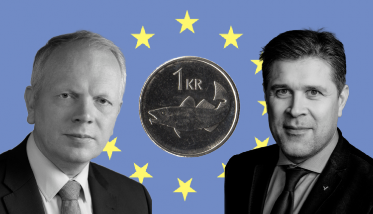 „En sé horft til lengri tíma er hætt við að krónan verði okkur fjötur um fót,“ skrifuðu Bjarni og Illugi. „Sá sveigjanleiki sem krónan veitir okkur til að kljást við afleiðingar mistaka í hagstjórn eða til að bregðast við ytri áföllum á sér því miður þá skuggahlið að vera sveifluvaldandi og geta ýtt undir óstöðugleika í hagkerfinu.