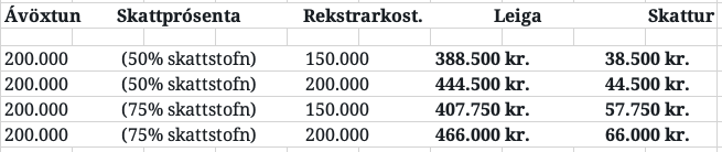 - Eftir breytingu: 16,5% af heildarleigu fer í skatt