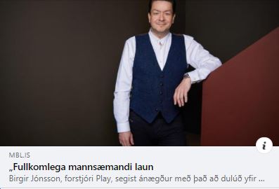 Sá sem er með 352 þús. kr. fær um 275 þús. kr. útborgaðar eftir skatta, lífeyrissjóð og félagsgjöld. Framfærsluviðmið umboðsmanns skuldara fyrir barnlausan einstakling á húsnæðiskostnaðar er 170 þús. kr. á mánuði svo grunnlaunin hjá Play duga fyrir húsleigu, rafmagni, hita, hússjóði og öðrum húsnæðiskostnaði upp á 105 þús. kr. Það dugar kannski fyrir herbergi með aðgangi að salerni og eldhúsi.Ef starfsmaðurinn á barn hækkar framfærslan upp í 221 þús. kr. og hann þá bara 54 þús. kr. upp í húsaleigu og annan húsnæðiskostnað. Það dugar fyrir tveimur rúmum í herbergi sem deilt er með fjórum öðrum.Þetta segir Birgir Jónsson, forstjóri Play, að sé „Fullkomlega mannsæmandi laun“. Hvílíkur sokkur, þessi maður.