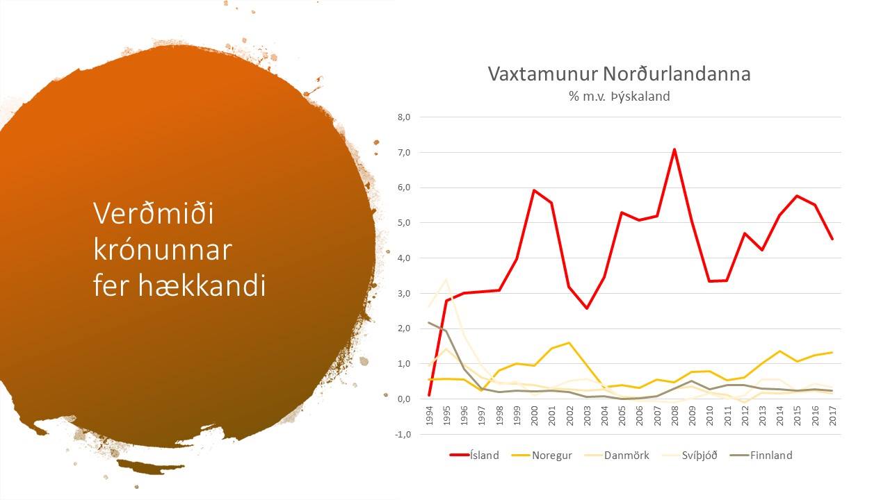 Ef við berum okkur saman við hin Norðurlöndin fáum við algera falleinkunn eins og meðfylgjandi mynd sýnir. Við erum ekki nálægt því að spila í sömu deild og þau. Krónan er ekki best í heimi og það eru svo sannarlega betri kostir í boði.