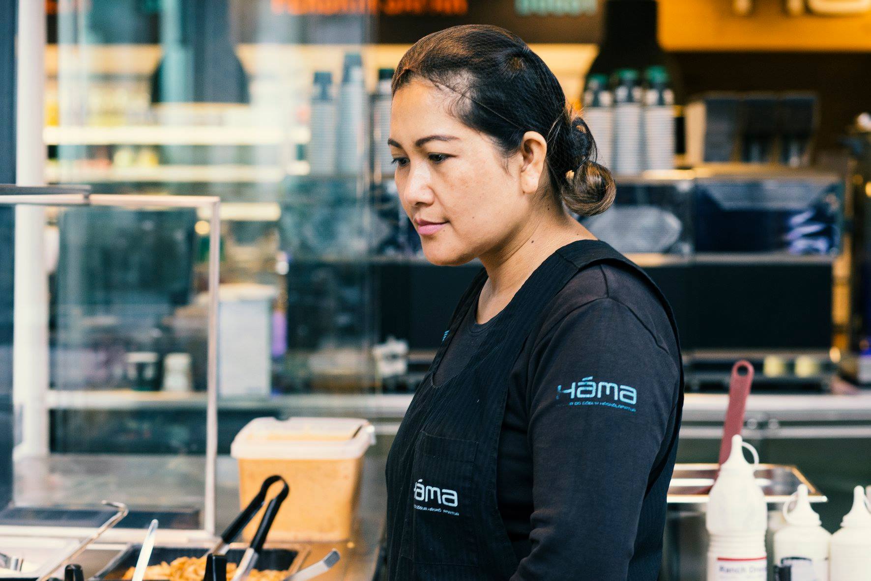 Duan Buakrathok vinnur á salatbarnum hjá Hámu, kaffiteríu stúdenta og er félagi í Eflingu.