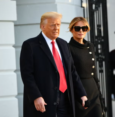 Forsetahjónin við Hvíta húsið í BNA.