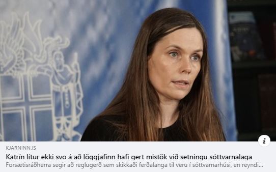 Eiríkur Rögnvaldsson finnur að, sem og sumir aðrir, að forsætisráðherrann, Katrín Jakobsdóttir, hafi ekki viðurkennt að mistök hafi verið gerð sem leiddu til þess að sóttvarnarskyldan féll fyrir dómi.