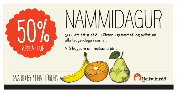 Við hjá Heilsuhúsinu ætlum að bregðast við ákalli samfélagsins og bjóða 50% afslátt af lífrænum ávöxtum og grænmeti alla laugardaga í sumar. Með þessu vill Heilsuhúsið leggja sitt af mörkum til að efla heilsu þjóðarinnar. Við teljum þetta okkur ljúft og skylt og í raun vera okkar samfélagsleg ábyrgð.