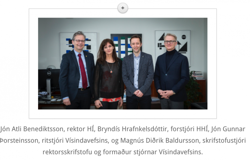 Undirritun samnings á milli HHÍ og HÍ um starfsemi Vísindavefsins