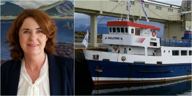 Gullfoss, nýr hvalaskoðunar- og sjóstangveiðibátur á Akranesi, fór í jómfrúarferð sína í gær, við lok Írskra daga. Regína Ásvaldsdóttir, bæjarstjóri var með í för og landaði hún fyrsta fiskinum um borð. „Hún veiddi þónokkra fiska, tók tvo makríla í hali og veiddi þorsk líka,“ segir Gunnar Leifur Stefánsson einn eigenda Gullfoss. „Það var mokveiði hjá öllum. Báturinn kemur vel út og allir voru ánægðir. Svo grilluðum við aflann á heimleiðinni,“ sagði Gunnar. Frá þessu segir á vef Skessuhorns, skesshorn.is.