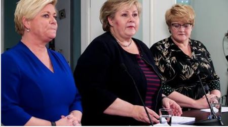 Leið nú helgin og mánudagurinn rann upp sólbjartur og fagur með yfir 20°C hita. Hitinn fór þó fljótlega vel yfir 40°C á stjórnarheimilinu er leið á daginn. Þá kom nefnilega í ljós að Siv Jensen og Trine Skei Grande túlkuðu „samkomulagið“ sitt með hvorum hætti. Í dag eru þær alls ekki sammála. Spurningin er hvenær límið sem heldur Ernu-stjórninni saman bráðnar og stjórnin dettur í sundur.