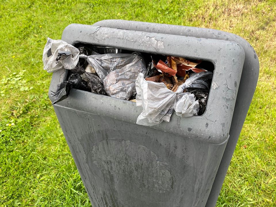 Ég: – Mér nægir alveg að sjá ruslafötuna þegar ég geng þarna framhjá nærri daglega. Þarf engar aðrar upplýsingar. Hún er ennþá troðfull. Varla tekur viku að tæma einn rusladall?