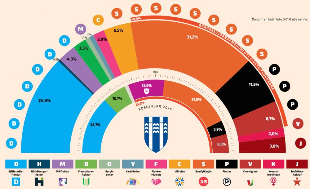 Aðeins þrír nýir flokkar fengju mann kjörinn. Auk Sósíalistaflokksins kæmu inn í borgarstjórn með sitthvorn fulltrúann Viðreisn með 6,5% fylgi og Miðflokkurinn með 4,3%. Báðir tapa þeir frá síðustu könnun og Viðreisn sýnu meiru.