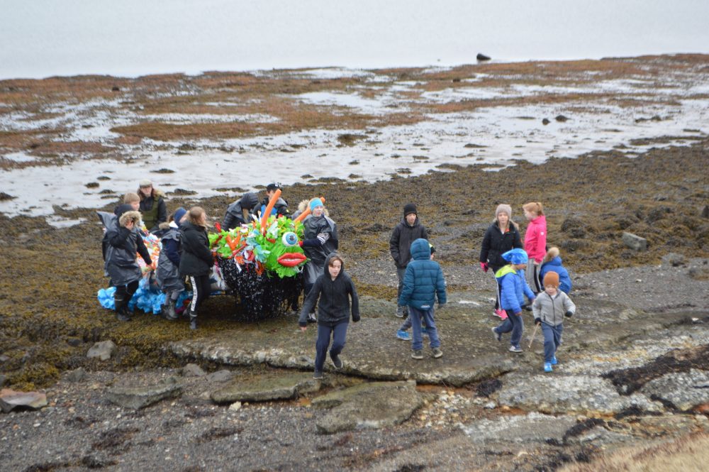 Átakið með plastgjörningi nemenda í Sjálandsskóla, þar sem nemendur drógu plastskrímsli að landi á kayökum. Nemendur skólans hafa vakið athygli á plastmengun þ.m.t. plastmengun í sjó og hreinsa reglulega strandlengjur í nágrenni skólans. Flutt voru tónlistaratriði tengd hafinu og héldu nemendur og fulltrúi Landverndar, Rannveig Magnúsdóttir stuttar ræður.
