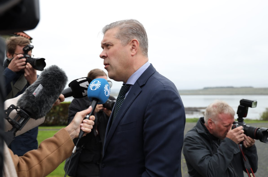 Bjarna var mikið niðri fyrir á Bessastaðatröppunum þegar hann talaði um flóttafólkið. Hann sagði það hafa skapað vanda. Hann sagði það vera gjörsamlega óásættanlegt að kostnaður við að svara fólki já eða nei hvort það fengi hér hæli væri kominn yfir tíu milljarða króna á ári.