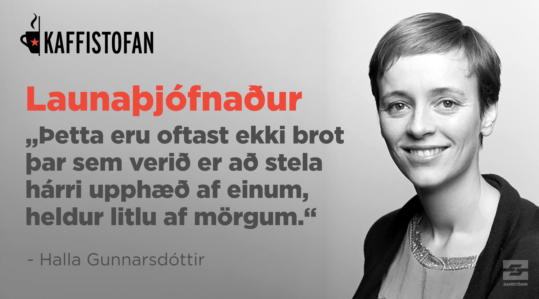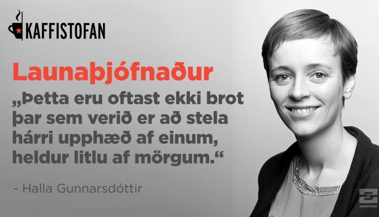Halla Gunnarsdóttir og Hjalti Tómasson litu við á Kaffistofuna á fimmtudagskvöldið til að ræða það sem mörgum okkar er framandi og gefa okkur smá innsýn í málið. Þar sagði Halla meðal annars: „Þetta eru oftast ekki brot þar sem verið er að stela eitthvað brjálæðislegri upphæð af einum, heldur litlu af mörgum.“
