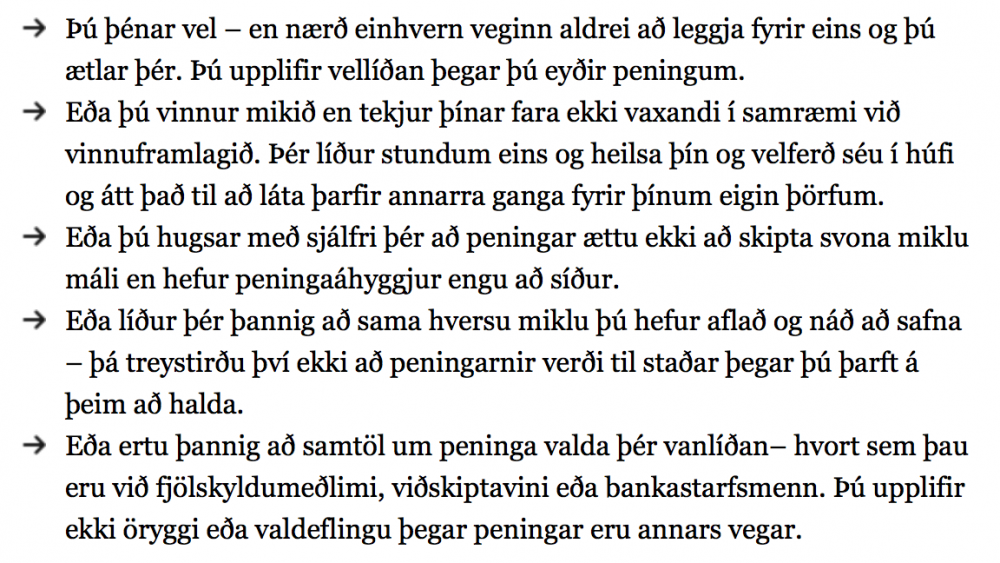 Sniðugt námskeið fyrir þá sem láta peninga stjórna sinni líðan.