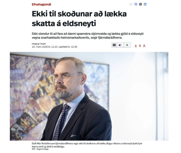 Auðvitað erum við máttlítil gagnvart sviptingum á alþjóðavettvangi, í öllu falli munu hærri stýrivextir ekki stöðva árásarstríðið gegn Íran, opna Hormússund eða endurræsa framleiðslu sem hefur stöðvast eða orðið fyrir skemmdum. En ábyrg stjórnvöld verða að líta á það sem þau geta gert og við höfum tæki til að draga úr högginu hér heima. Olíufyrirtækin þurfa að taka hluta af skellinum , frekar en að græða á honum eins og oft er raunin. En stjórnvöld eiga líka að íhuga alvarlega að draga tímabundið úr skattlagningu á eldsneyti til að draga úr verðbólguáhrifunum. Hagurinn af því gæti verið margfalt meiri en kostnaðurinn.“